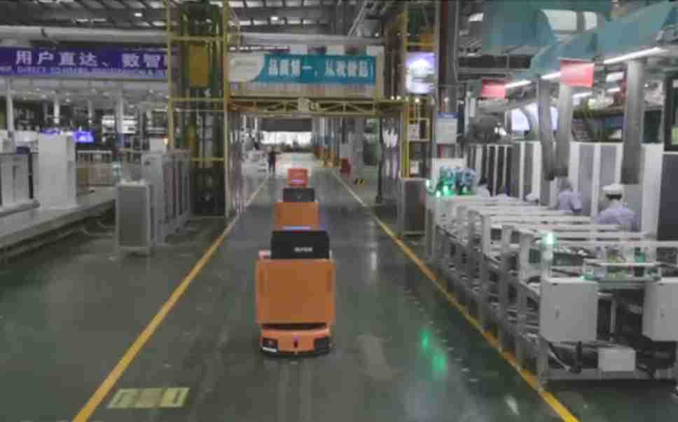 为车载冰箱物流配送打造的智能解决方案,,包含产中物流通过潜伏举升AMR搬运至线边,,产后成品物流智能仓储,,,流程包含产中物流智能齐套入库,,,线边安灯叫料AMR智能配送至线边,,,成品入库、、、、出库,,,,通过无人堆高车机器人,,,,智能仓储管理替代人工作业管理,,实现更高存储、、、更高效率、、、、更具柔性化的解决方案。。。